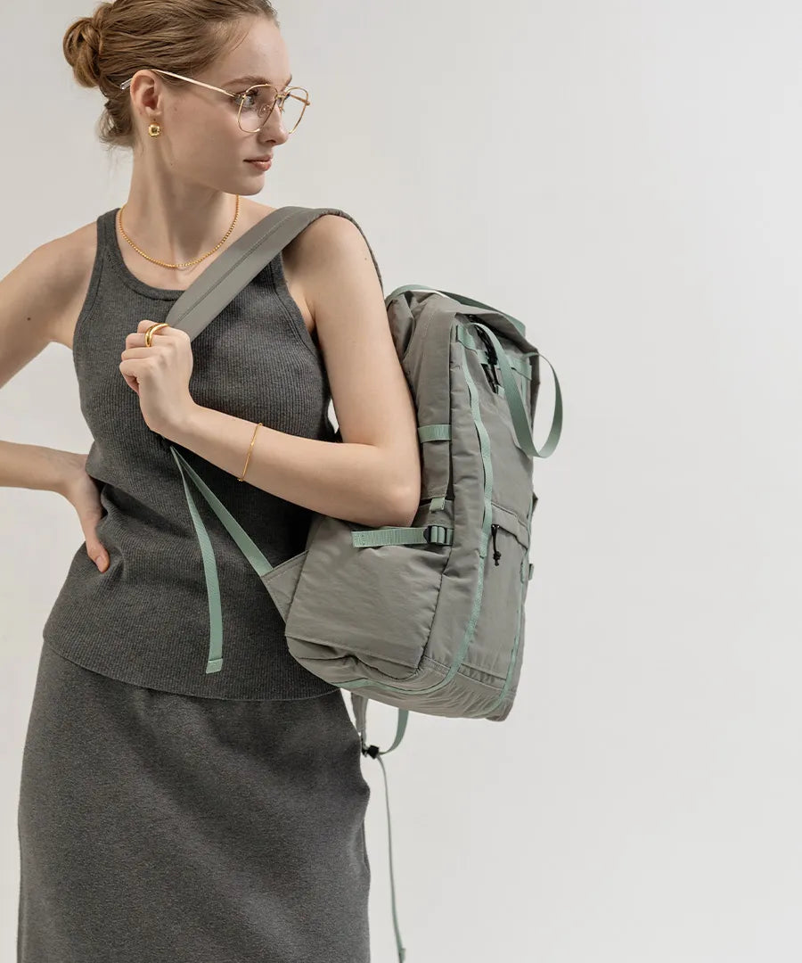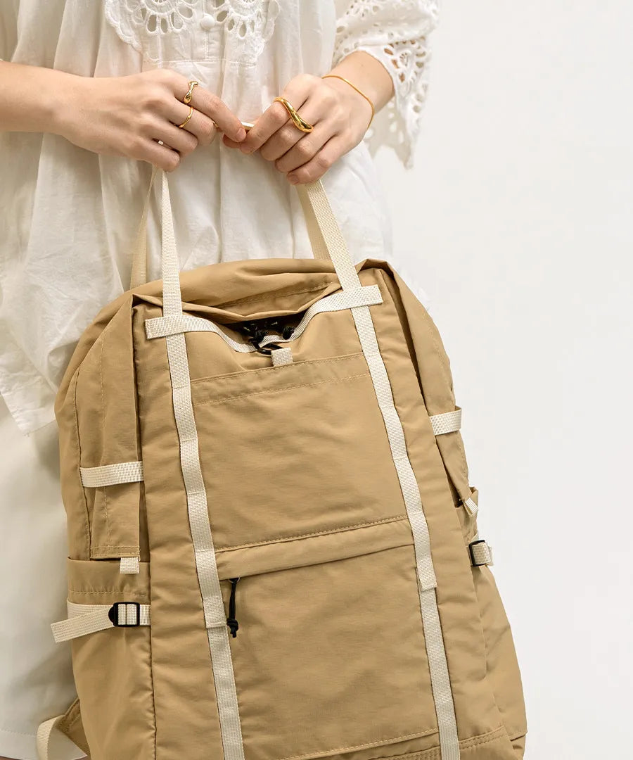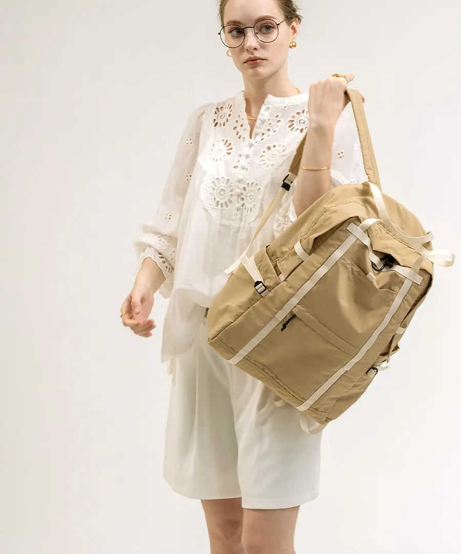 - 【营造出轻松的搭配感】自然的配色、轻盈的造型、哑光尼龙的质感、略带光泽的胶带,营造出成熟舒适的氛围,是一款活力与成熟完美融合的单品。