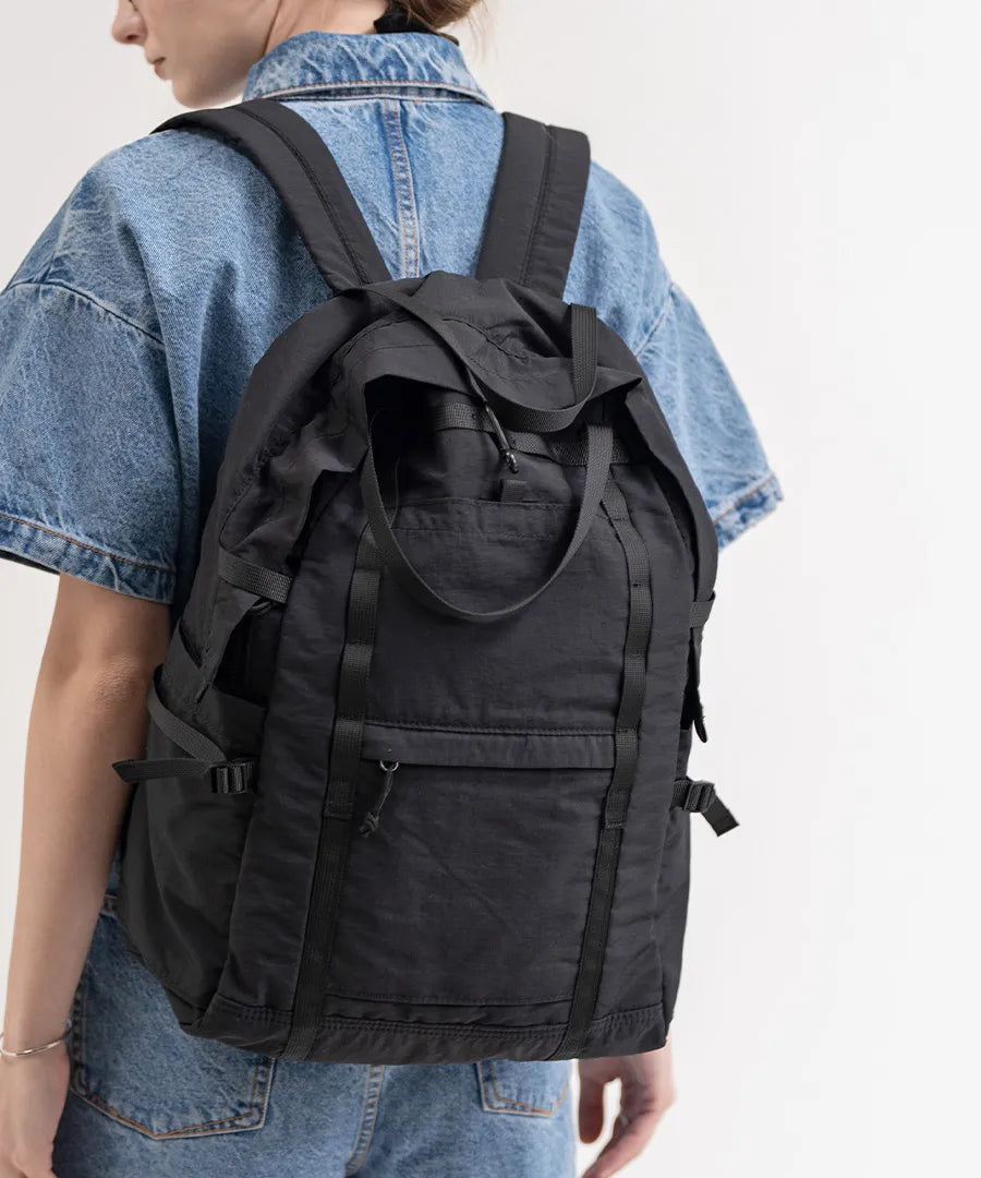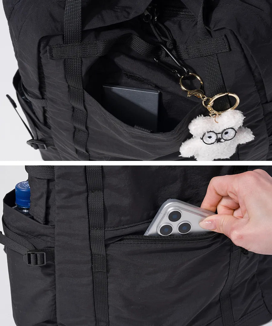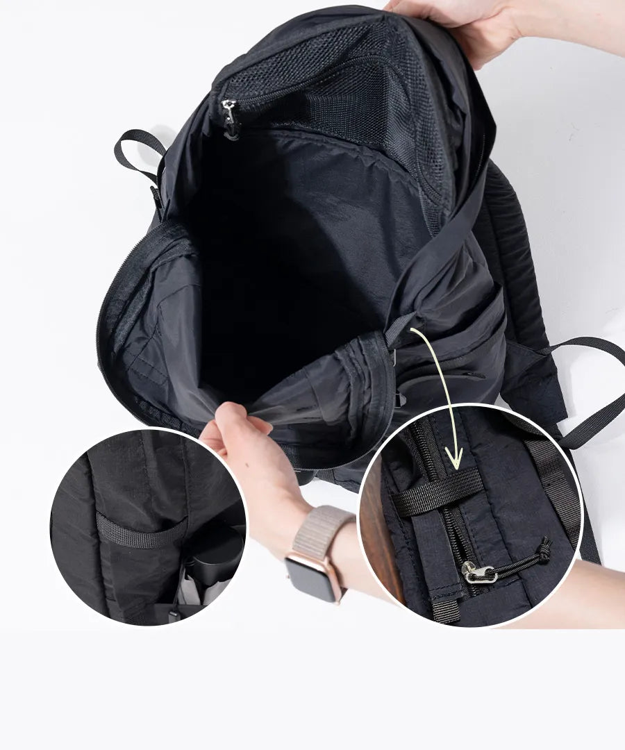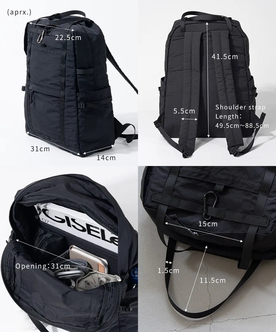- 【不使用时不占空间】皱褶尼龙使其平整,因此不使用时易于存放。 由于它不占用太多空间,因此可以轻松放入手提箱中,并可用作旅行的副包。